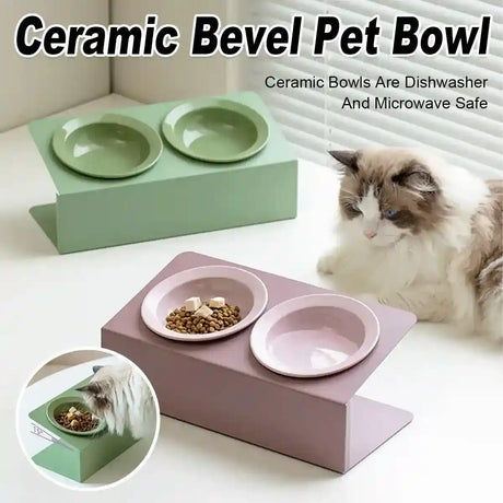 Tilted Ceramic Cat Bowl Elevated Pet Feeding Dish for Cats and Small Dogs