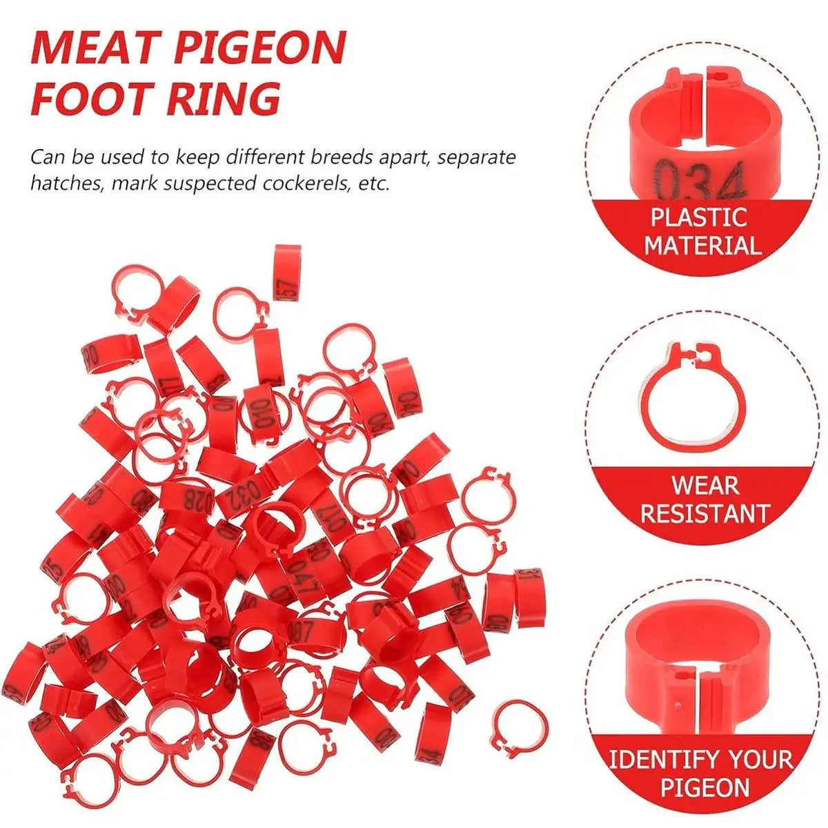 The 100 Numbered Bird Leg Bands set is an essential tool for bird breeders and hobbyists, perfect for tracking and identifying pigeons, parrots, chickens, and other poultry. Each band is uniquely numbered from 001 to 100, simplifying organized tracking of individual birds. Crafted from durable, waterproof plastic, these lightweight leg rings are comfortable for birds to wear and resistant to wear and tear, ensuring they stay securely attached over time. With vibrant color options, this set also allows for easy visual differentiation of groups or breeds.