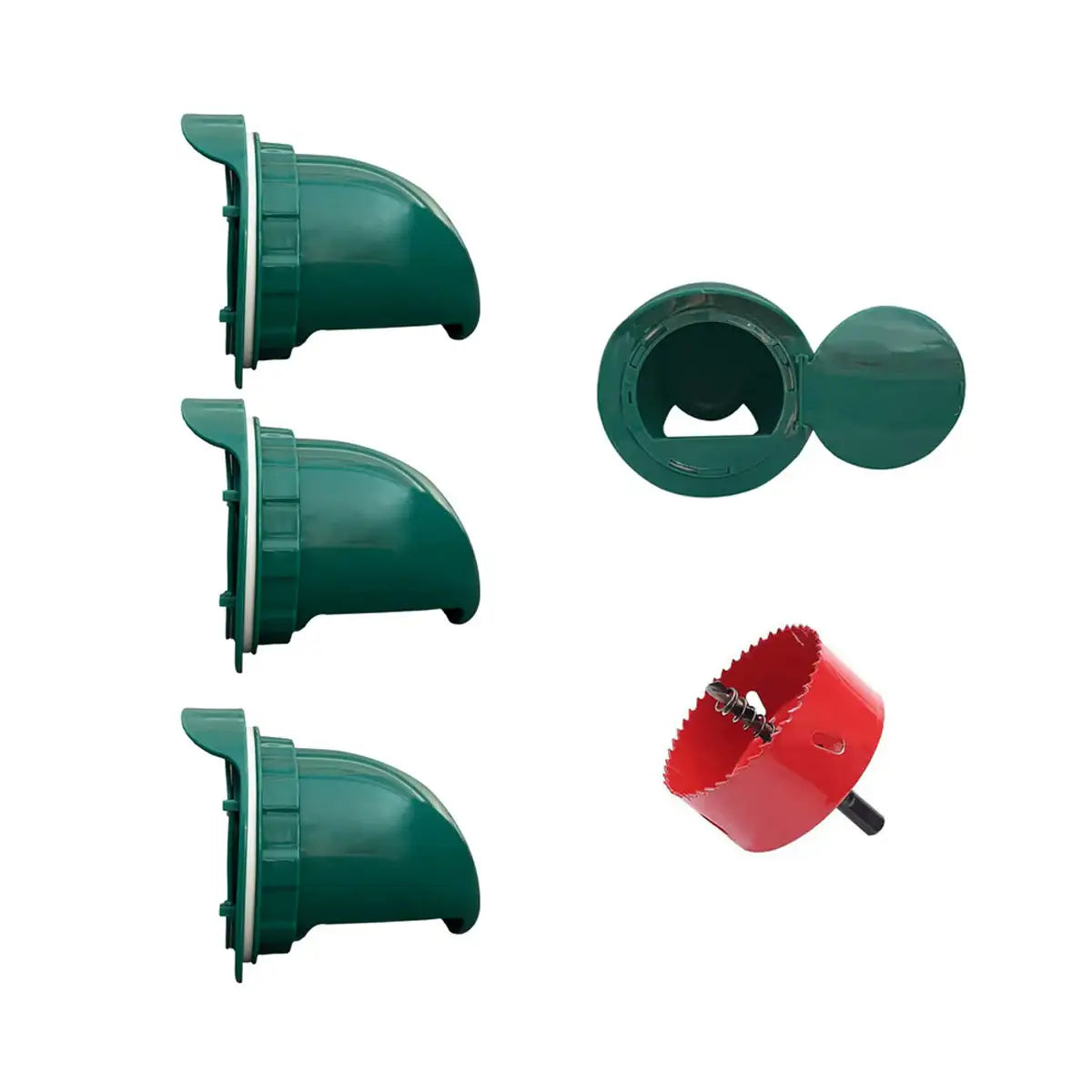 Keep your poultry feeding area clean and efficient with this 5-piece set of automatic chicken feeder ports. Designed with a gravity-fed mechanism and waterproof hood, each port helps minimize feed waste while protecting the feed from rain, rodents, and wild birds. These automatic chicken feeder ports are ideal for backyard poultry keepers seeking a reliable, low-maintenance, and hygienic feeding solution. Each port can be easily installed into buckets, barrels, or storage bins using the included hole saw tool. This DIY-friendly kit ensures quick setup and compatibility with various container types. Whether you're raising chickens, hens, or ducks, these automatic chicken feeder ports help reduce mess, deter pests, and make feeding more consistent and stress-free.