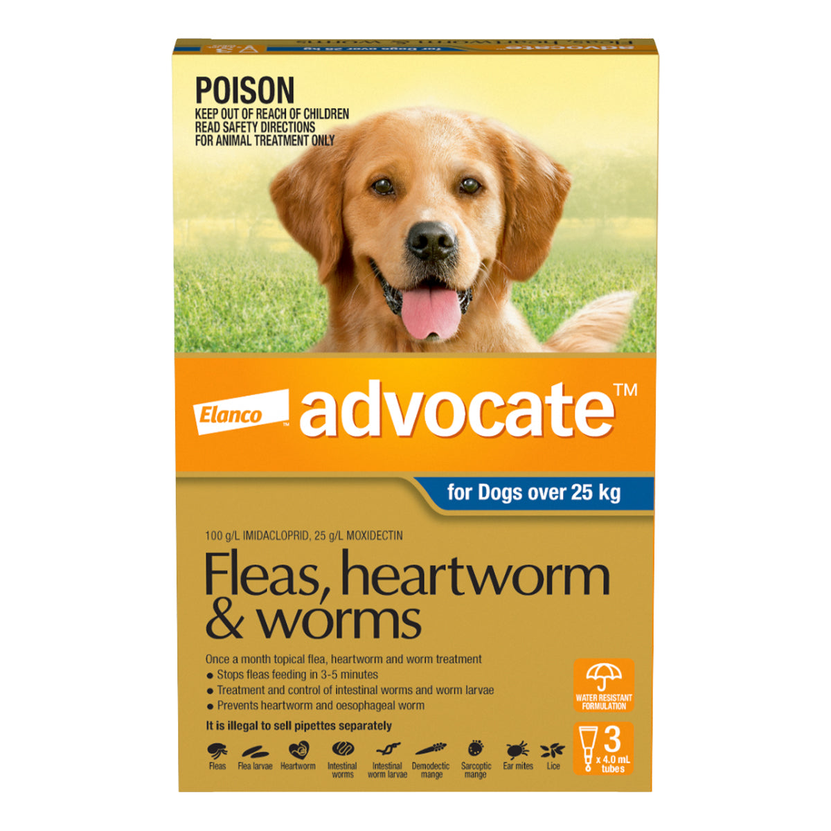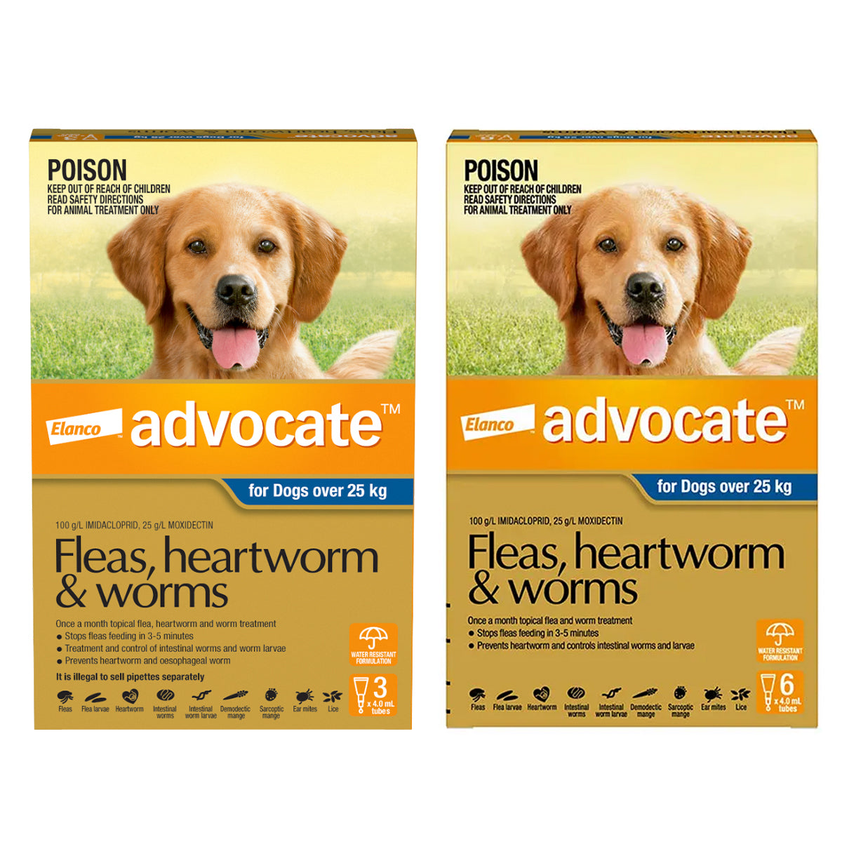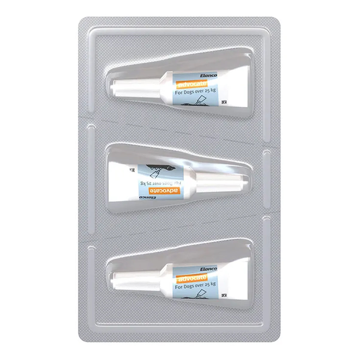 Advocate Spot-On is a broad-spectrum parasite treatment designed to protect large dogs over 25kg from multiple parasites with one easy monthly dose. Formulated with Imidacloprid and Moxidectin, Advocate Spot-On kills fleas on contact, preventing bites and reducing the risk of flea allergy dermatitis. It also provides continuous protection against heartworm disease, intestinal worms, whipworm, oesophageal worm, mites, and lice. Easy to apply and water-resistant, this monthly treatment ensures your dog is safeguarded between doses. Suitable for puppies from 7 weeks of age and safe for long-term use.