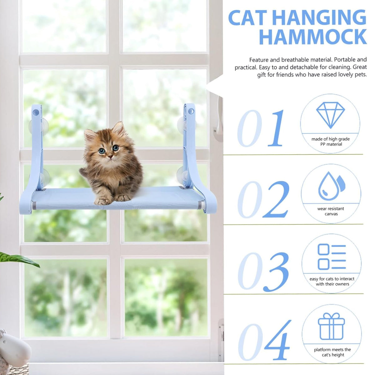 This cat hammock provides a safe and comfortable elevated resting spot for your feline. Designed with durable PP material and strong suction cups, the cat hammock attaches securely to windows, allowing cats to sunbathe, overlook, and relax. The breathable canvas fabric ensures comfort, while the space-saving design makes it ideal for small apartments or multi-pet households. Whether in hammock style or platform style, the cat hammock encourages natural lounging and play.