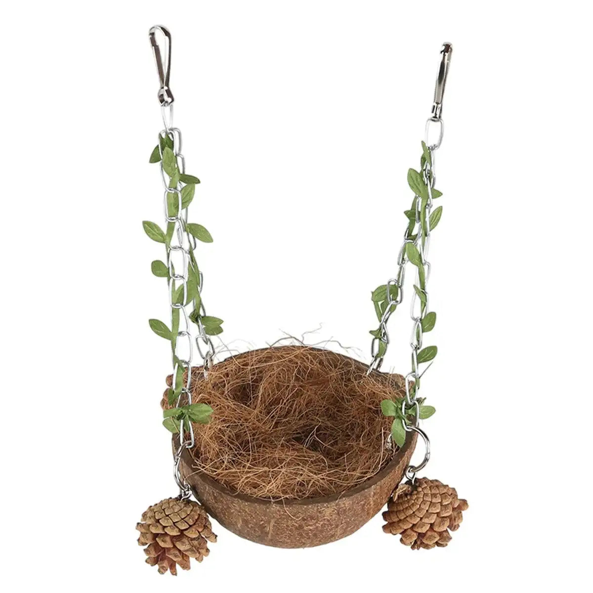 Coconut Bird's Nest for Parrots Natural Habitat with Swing & Hammock