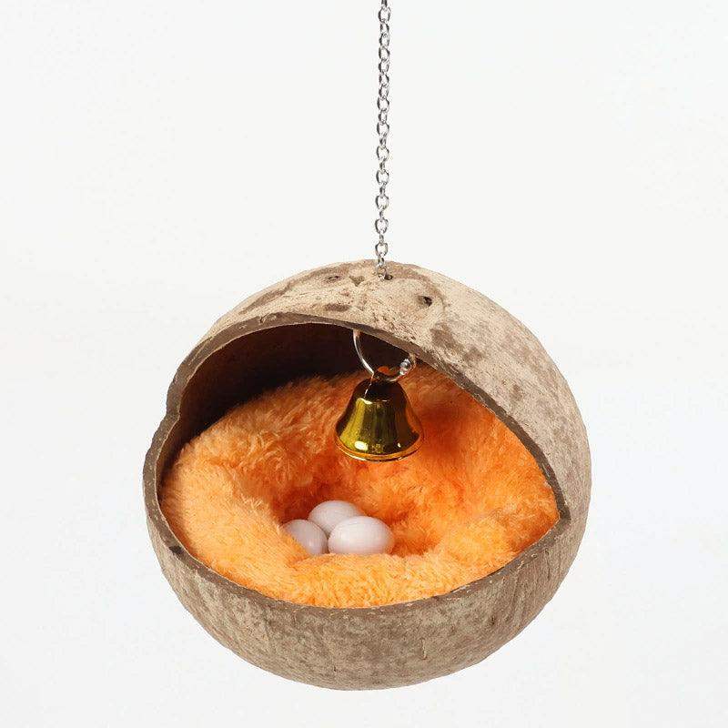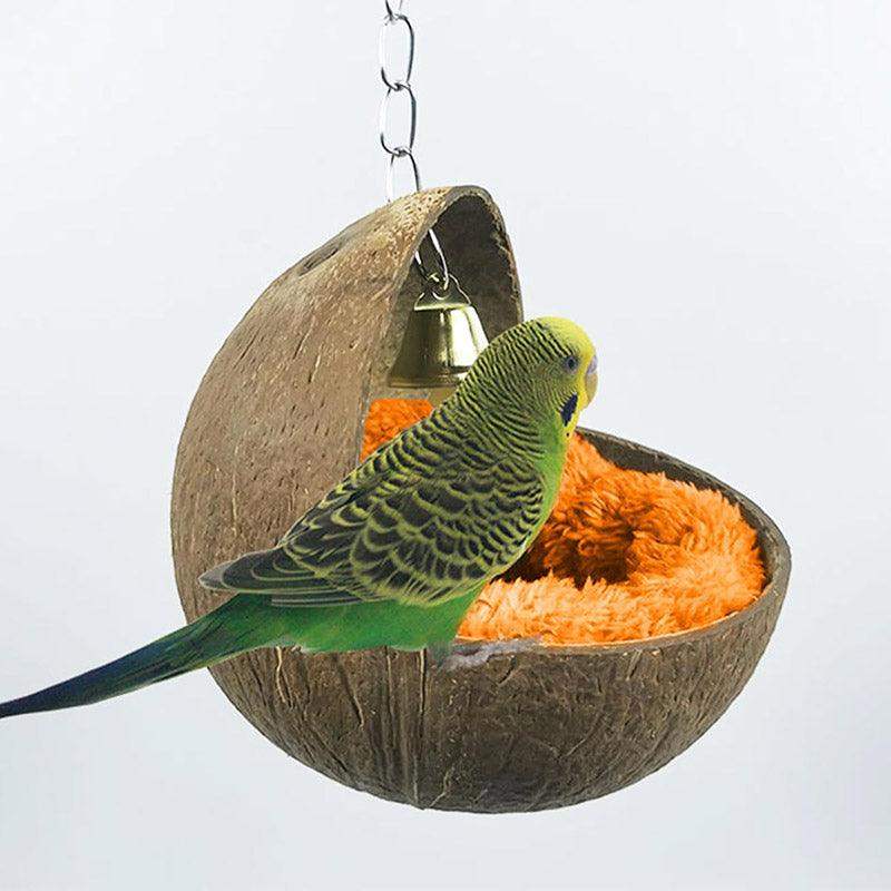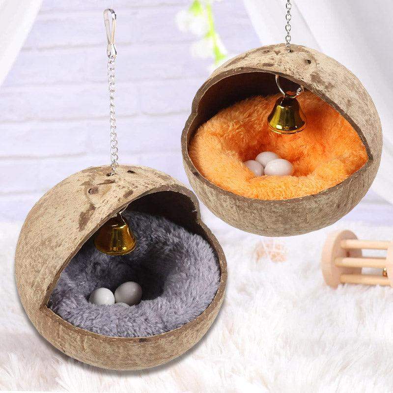 Coconut Shell Bird Nest With Plush Pad For Small Birds