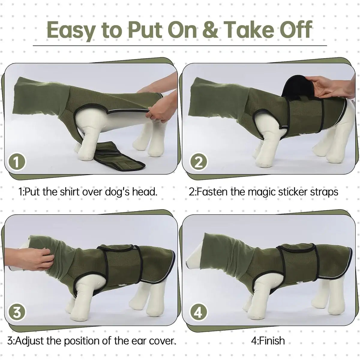 • Dog anxiety vest with soft hood – reduces noise and soothes nerves