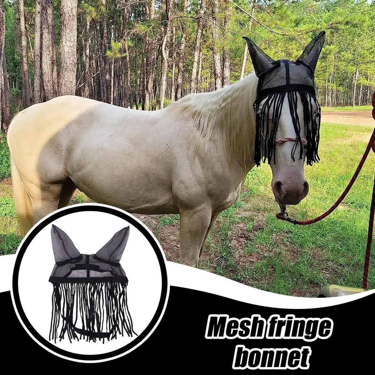 Fly-Proof Horse Ear Mask Tassel Design Face Cover for Insect Protection