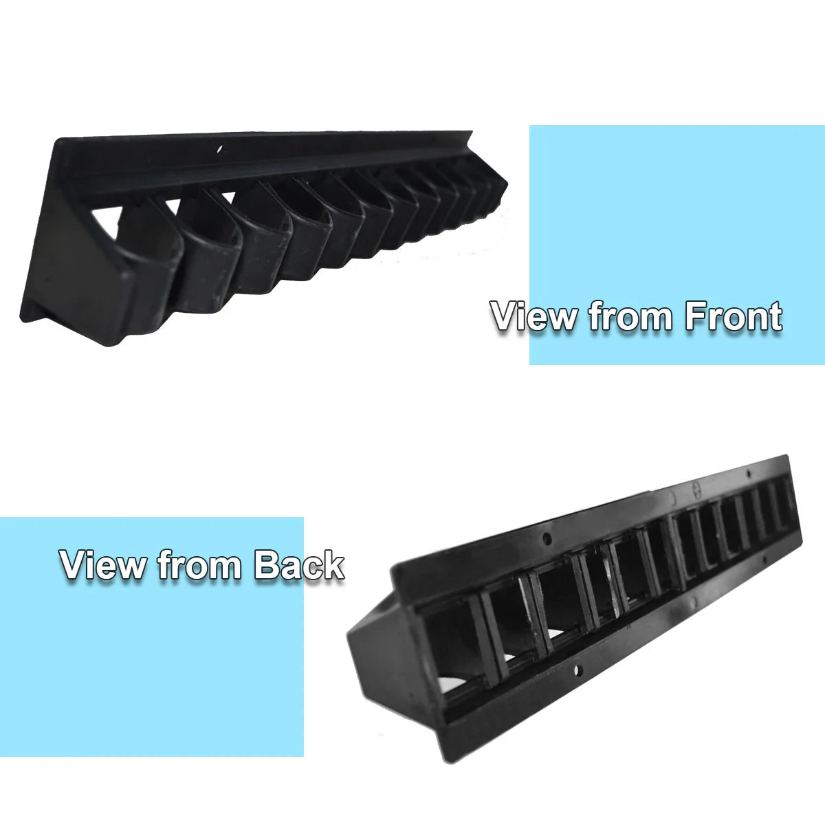 Organise your stable or tack room with this practical riding whip rack, designed to store up to 11 whips, crops, or grooming tools. Perfect for barns and indoor storage areas, this riding whip rack is crafted from durable plastic with pre-drilled holes for quick wall installation. Whether used for daily grooming or training sessions, the riding whip rack keeps essential gear easily accessible while saving valuable floor space.