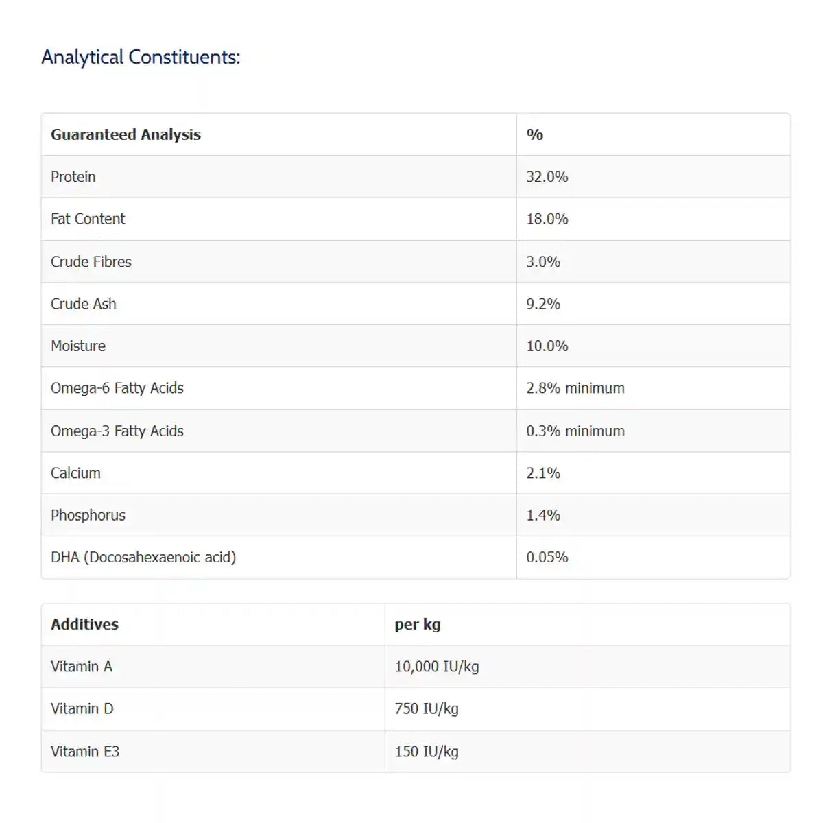 • Omega fatty acids contribute to skin health and a lustrous coat