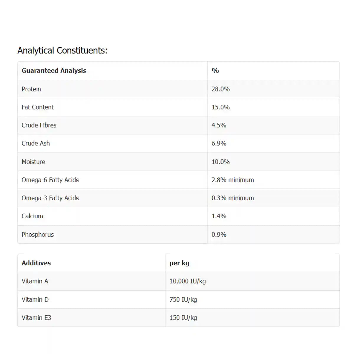 • Balanced omega-3 and omega-6 fatty acids promote a healthy coat and skin