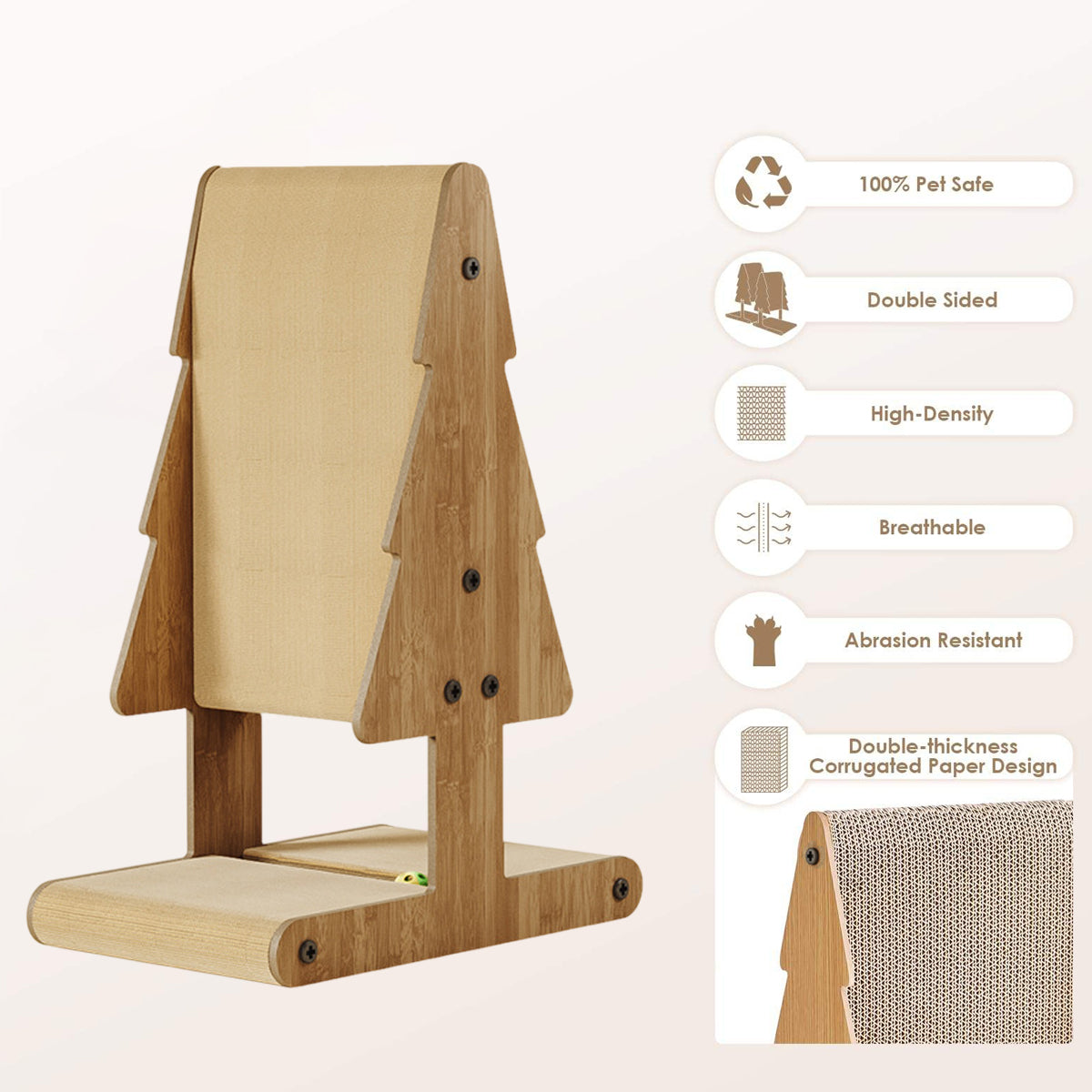 Keep your feline friend entertained and your furniture safe with this tree-shaped cat scratching board. Made from high-density corrugated cardboard and designed in a vertical, space-saving structure, it provides a satisfying surface for cats to scratch, stretch, and play. The L-shaped form is perfect for multi-angle scratching, and the included ball toy beneath adds extra fun. Whether your cat is lounging or scratching, this cat scratching board makes a functional and aesthetic addition to your home. With double-sided use and a robust base, this cat scratching board ensures long-lasting support for everyday claw action.
