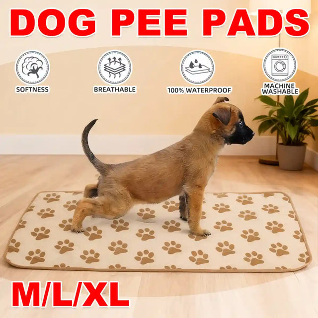 The Washable Reusable Pet Dog Pee Pad provides a reliable, eco-friendly solution for house training and home protection. Featuring a 4-layer construction—soft polyester upper, super absorbent core, waterproof TPU, and non-slip polyester base—the Washable Reusable Pet Dog Diaper Pad locks in moisture and prevents leaks. Perfect for puppies, senior dogs, or incontinence use, the Washable Reusable Dog Pee Pad is durable, easy to clean, and reusable after multiple washes. Available in three sizes (M, L, XL), this beige paw print pad is both functional and stylish, protecting floors, carpets, and furniture with ease.