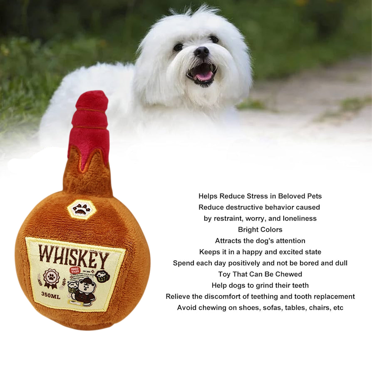 Funny Dog Toy: Designed like a whiskey bottle for a humorous and cute playtime look
