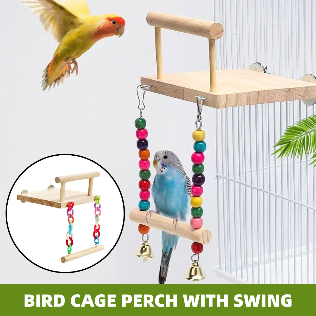 2-in-1 Wooden Bird Swing Platform for Parrots & Budgies