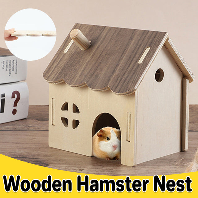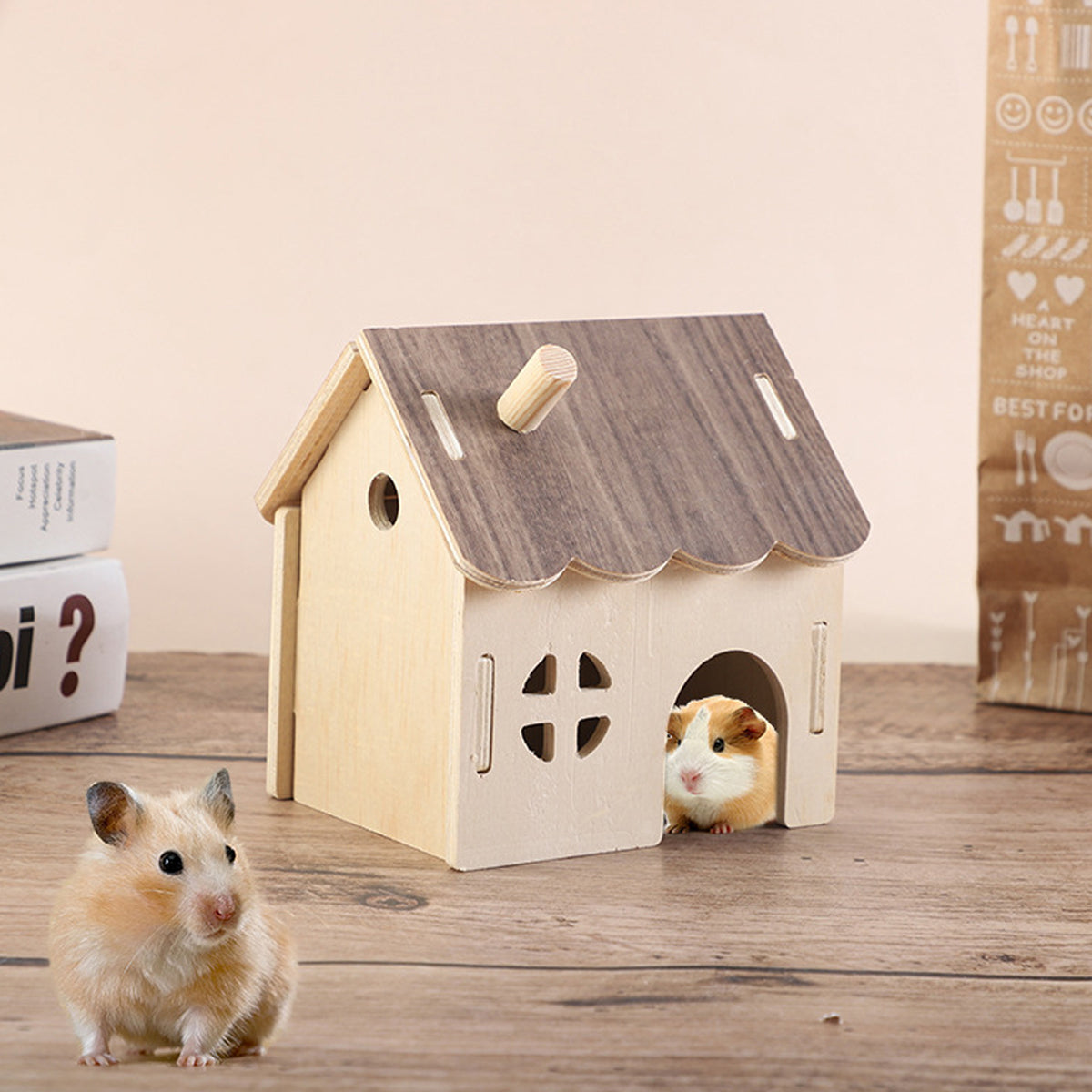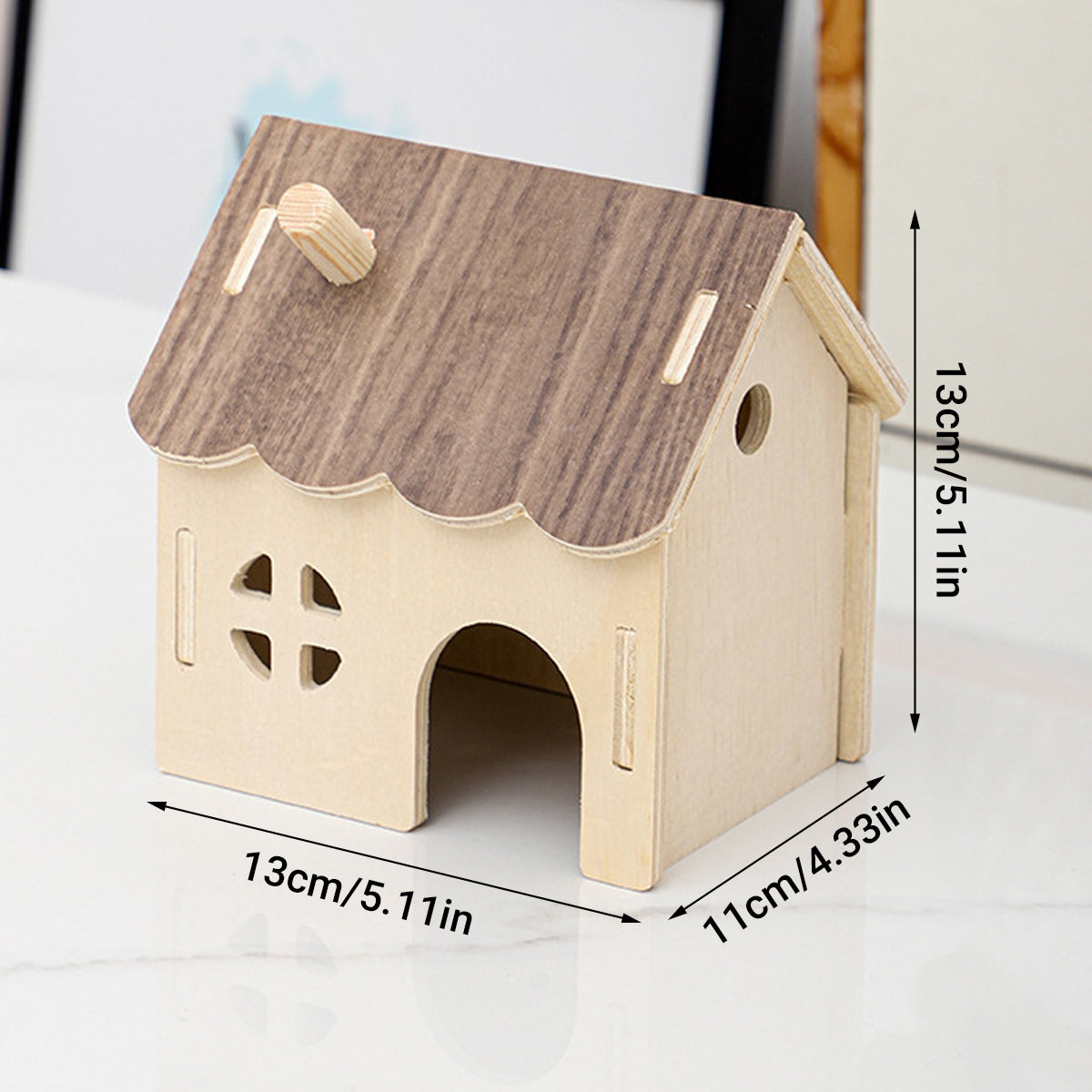 Give your small pets a cozy retreat with this hamster house made from durable solid wood. The hamster house features a DIY assembled design, making it fun and easy to set up while ensuring a safe and sturdy hideout. With its natural wood color, it blends seamlessly into any hamster cage environment. Measuring 5.11×4.33×5.11in, this wooden house provides an ideal space for golden bears and other hamsters to rest, hide, and play. Easy to clean and maintain, the hamster house supports your pet’s comfort and sense of security.