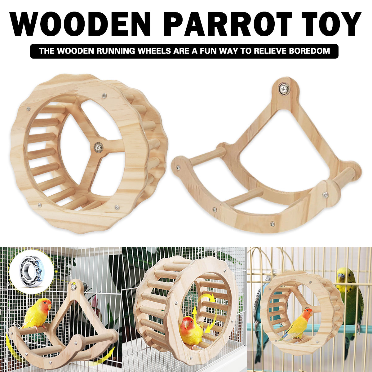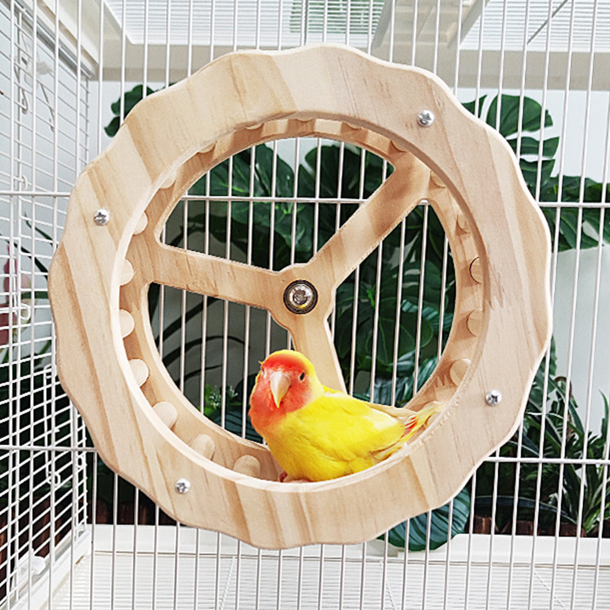 Dual-Function Bird Toy: Includes a rotatable running wheel and wooden rocker for exercise and interactive play.
