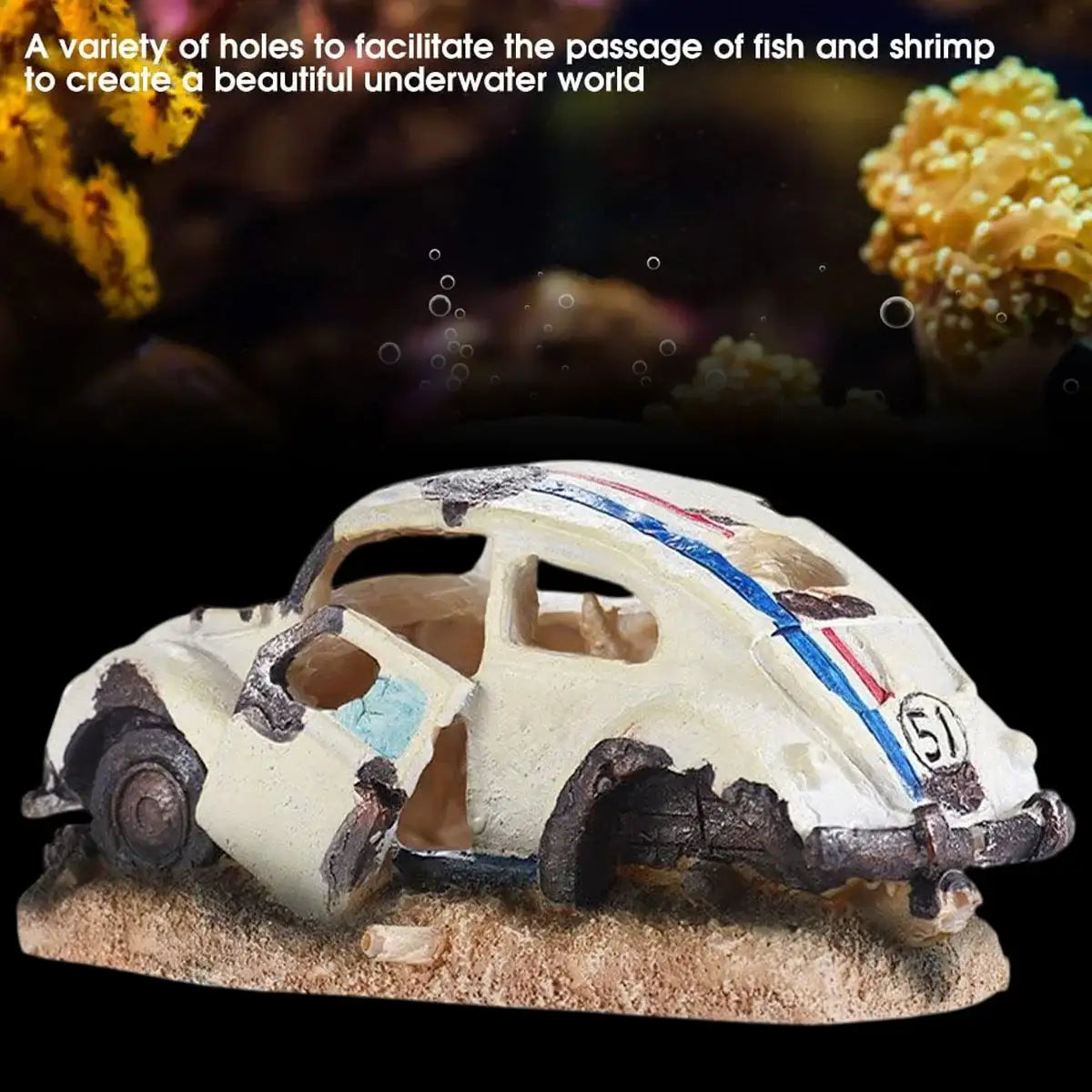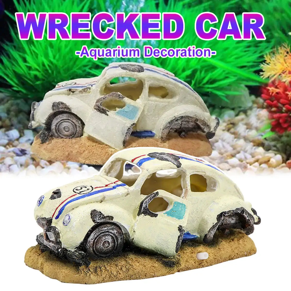 Wrecked car aquarium decoration made from durable, non-toxic resin
